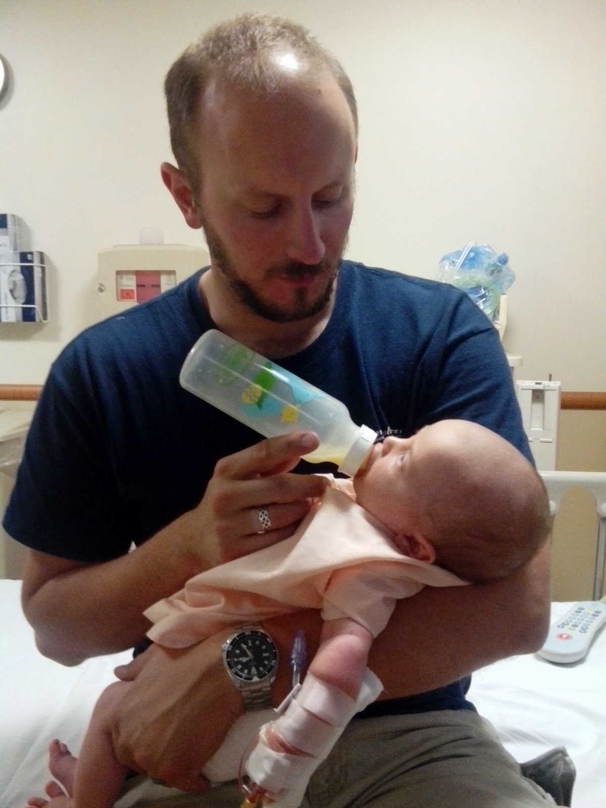 Here are a few more photos to document the days of our sweet babies. Lena celebrated seven weeks with a trip to the pediatric ER. There is something so heart breaking in an infant hospital gown! Lena has a few more follow up specialist appointments so hopefully we'll get to the bottom of her unhappy days and troubled tummy. Emmie took a big step this week and went swimming! Usually she cries in horror when she sees people go under water but this week she had such fun in Granddad's pool. Even the hard days are a blessing with our sweet babies and we are so thankful for them.